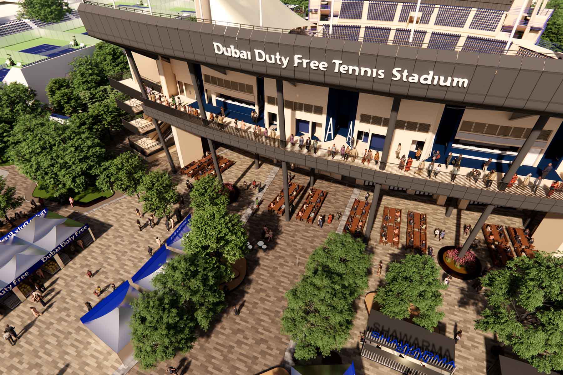 Rendering of the new temporary 2,000-seat Court 1 debuting in 2026A centerpiece of the redevelopment for 2026 is the new temporary Court 1, located adjacent to the main stadium. Fans can register for free via Ticketmaster for access to the new show Court 1, which is designed to host high-profile matches from both the WTA 1000 and ATP 500 draws, while increasing capacity during early round matches. Giving the opportunity to enjoy championship tennis in a premium environment, supporters can also watch high-profile matches, for free with registration, on the other side courts at the Dubai Duty Free Tennis Stadium.