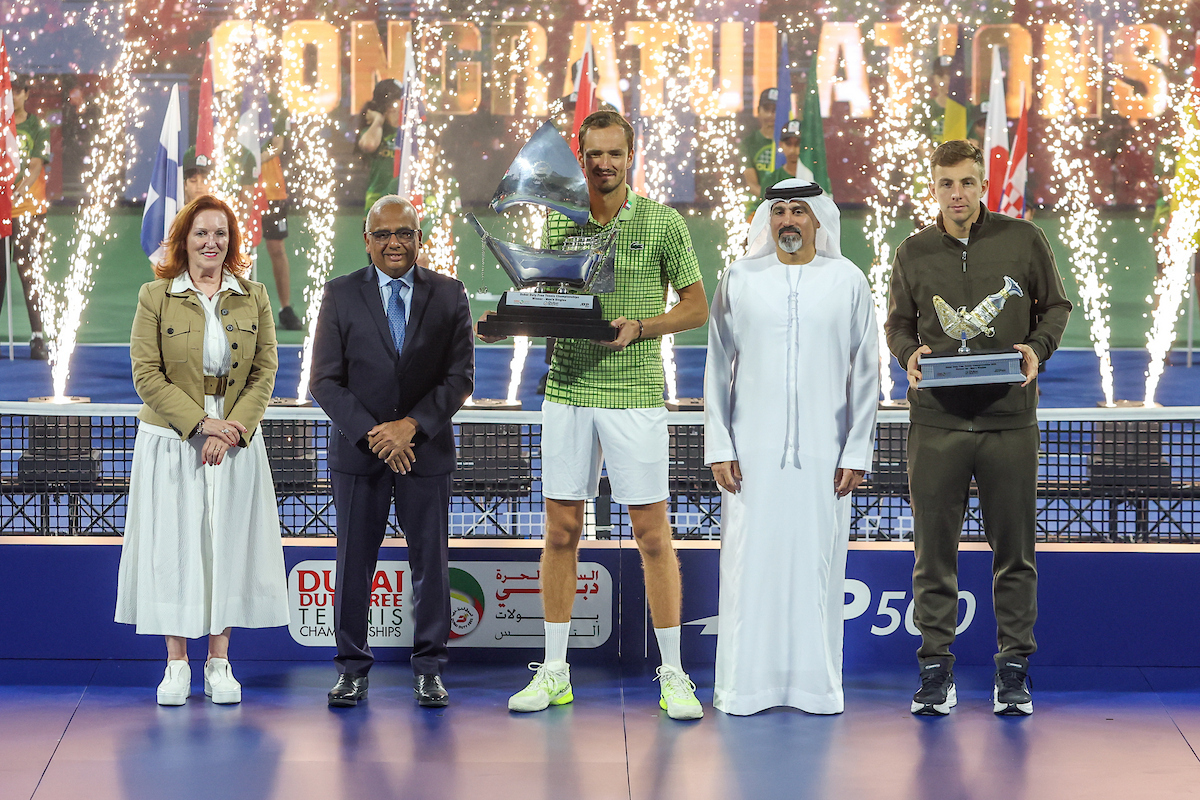 See photos from Day 6 of ATP action at the 2026 Dubai Duty Free Tennis Championships, featuring Harri Heliovaara, Henry Patten, Daniil Medvedev, and others.
