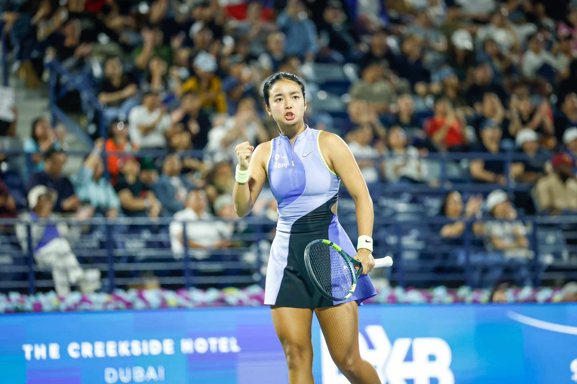 See photos from Day 1 of WTA action at the 2026 Dubai Duty Free Tennis Championships, featuring Alex Eala, Leylah Fernandez, Sara Bejlek, Zeynep Sonmez, and others.