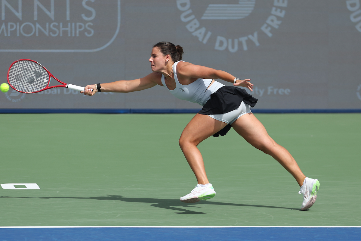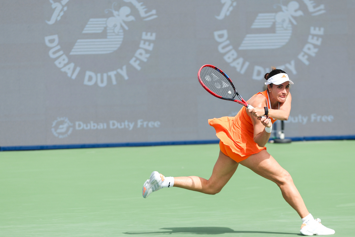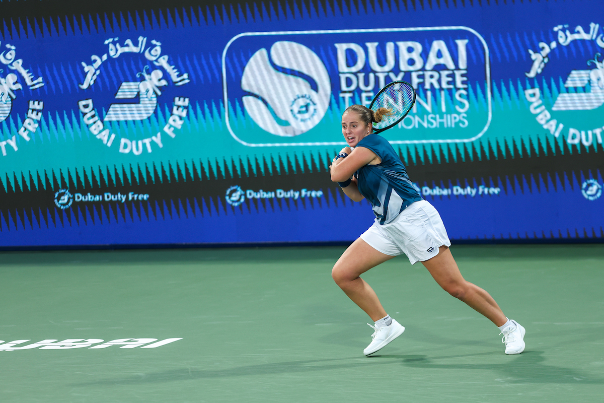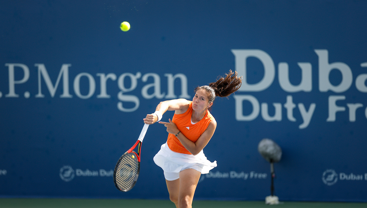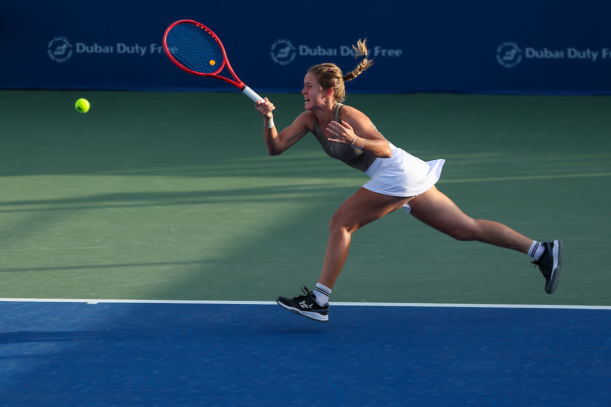 See photos from Day 2 of WTA action at the 2026 Dubai Duty Free Tennis Championships, featuring Paula Badosa, Anna Kalinskaya, Iva Jovic, and others.