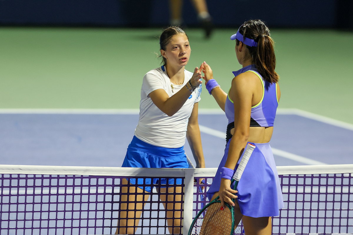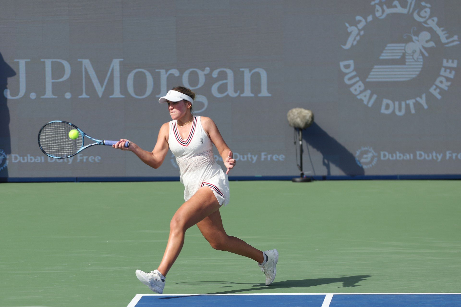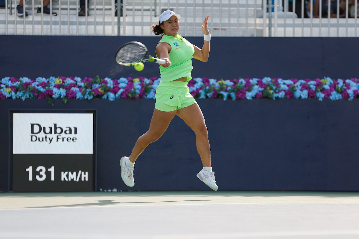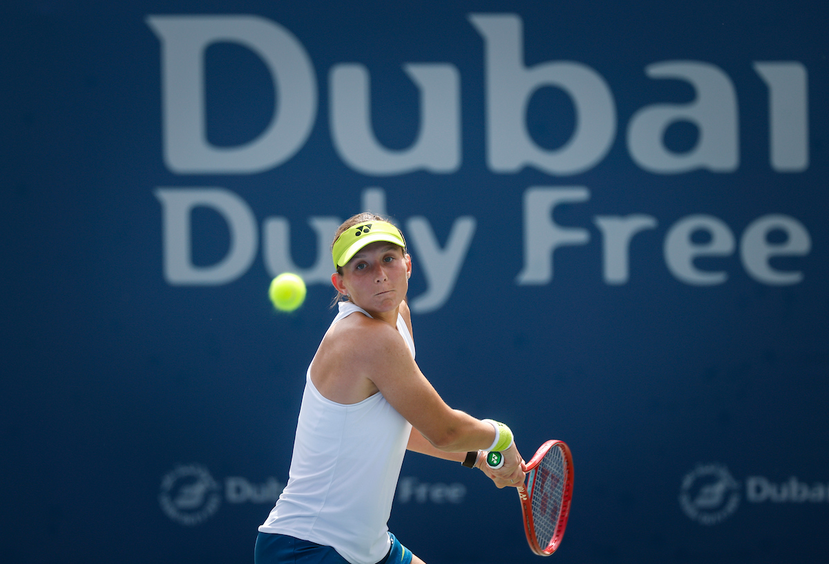See photos from Day 2 of WTA action at the 2026 Dubai Duty Free Tennis Championships, featuring Paula Badosa, Anna Kalinskaya, Iva Jovic, and others.