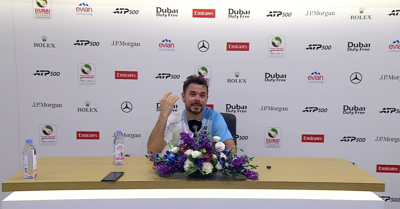 Stan Wawrinka speaks to the press after playing his last match at the Dubai Duty Free Tennis Championships—a loss to Daniil Medvedev in Round 2.